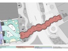 Интеграция моста с входными группами остановочных пунктов МЦК И МЦД-4 осуществляется через общественную зону. Ее структура представлена в виде двухэтажного объема со стеклянными фасадами и атриумом. На первом этаже будут кафе и технические помещения, а на втором различные магазины. Возвышение низа конструкций моста над проезжей частью улицы Тестовская составляет 5 м. Ширина пешеходного прохода составляет 7 метров.