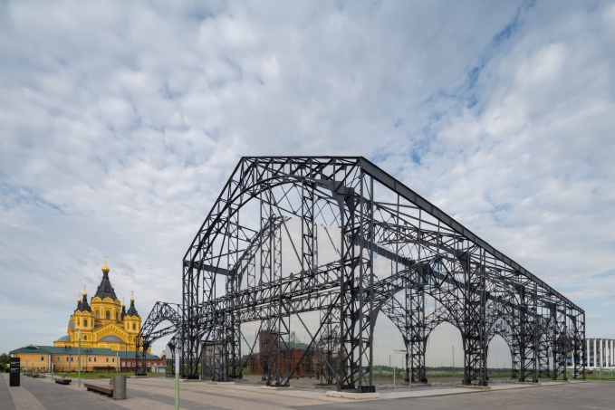 Официальное название объекта: металлические конструкции павильонов Центрального здания Всероссийских выставок 1882 и 1896 годов. Статус охраны: объект культурного наследия регионального значения. Пакгаузы расположены в городе Нижний Новгород на улице Стрелка, д.21, лит. Ж, И. Проект: 2019-2020. Реализация: 2021-2022. Общая площадь: 3338,15 кв. м. Литера И: 1592.6 кв. м. Литера Ж: 1745,5 кв. м. Максимальная отметка высоты: 16.57 м (конек исторических конструкций), 13.3 м (конек кровли нового объема).