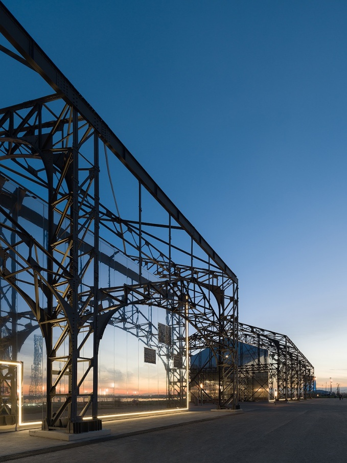 Композиция из исторического каркаса, эффектно подсвеченного в вечернее время, и новых объемов внутри него – это новый символ Стрелки и одновременно пример аккуратной реставрации и интеграции памятника промышленной архитектуры, реализованной, что немаловажно, относительно быстро и за умеренный бюджет.