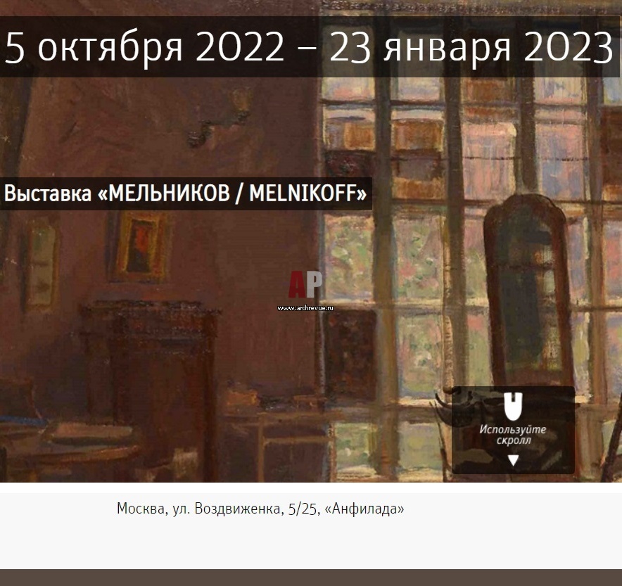 Первая за много десятилетий масштабная выставка «МЕЛЬНИКОВ/ MELNIKOFF», приуроченная к 130-летию архитектора, пройдет с 05-09-2022 по 23-01-2023 по адресу Москва, ул. Воздвиженка, 5/25, «Анфилада».