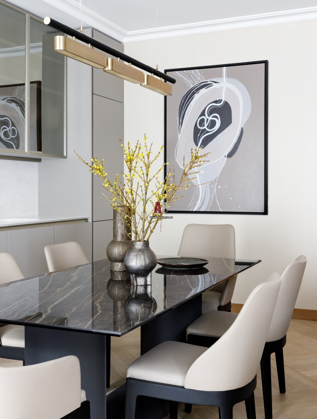 Дина Салахова: Это множество факторов: функциональность планировочных решений, их логика, эргономика и комфорт, соответствие интерьера архитектуре дома, грамотная ориентация по сторонам света с учетом окружения и видовых характеристик… Именно поэтому мы взяли за практику консультировать заказчиков до покупки недвижимости. Это снижает риск неверного первого шага, так как не каждая квартира отвечает нашим запросам, даже при большой площади.