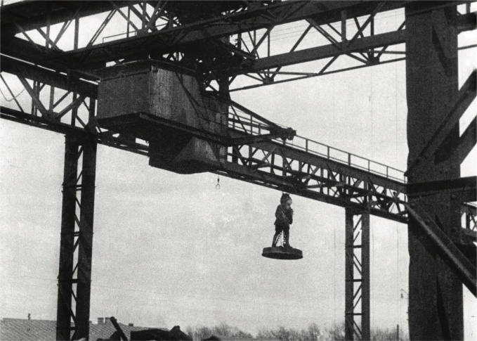 Оператор Михаил Кауфман на строительной конструкции 1925, Государственный центральный музей кино.