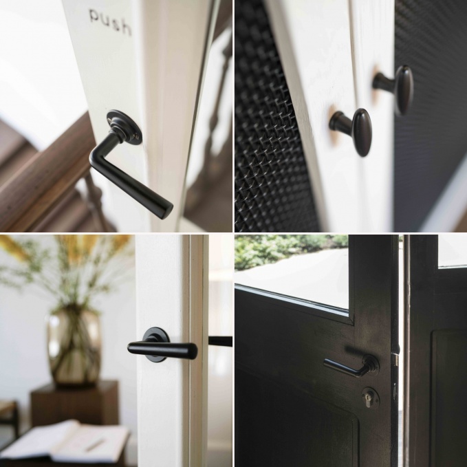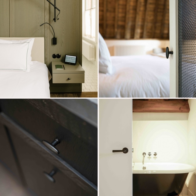 Влияние окружающей среды продиктовало дизайн – в нем отражены натуральность, уют, природные оттенки, которые безупречно сочетаются с роскошью. Фурнитура FORMANI серии INC by Piet Boon с новейшей отделкой PVD satin black установлена во всех помещениях здания. Современный и удобный образ дверных ручек создает идеальный баланс между новым дизайном и характерными чертами исторического здания.