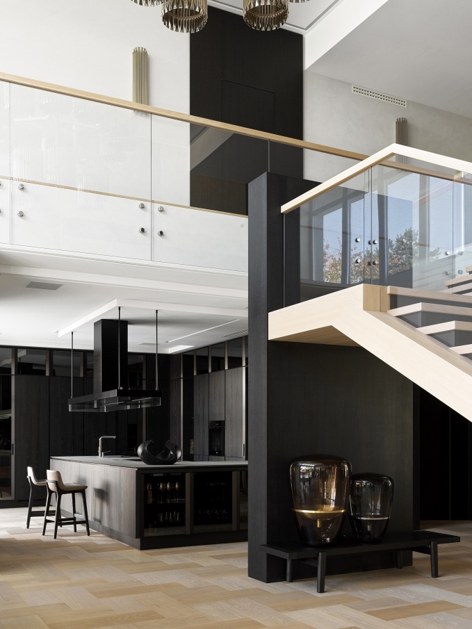 Татьяна Генне: Заказчик, как правило, приходит ко мне уже подготовленным. Это наиболее благоприятная ситуация. Встречаемся, общаемся и понимаем, сможем ли мы контактировать долго и на разные темы, существует ли эмоциональная и психологическая совместимость. Иногда приходится отстаивать решения, которые являются неким «набором», гарантирующим комфорт и требуемую эстетику: всегда по максимуму раскрываю пространство, стремлюсь к чистым линиям и приветствую неперегруженный декор. Настаиваю на нескольких «обязательно»: ванная комната (а не санузел) площадью не менее 15 кв. м с окном в пол; гардеробная; открытая лестница. Открытая лестница – очень интересный объект в доме, стержень, на который нанизывается интерьер.