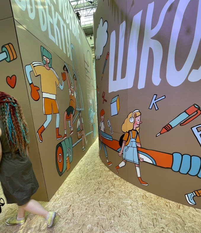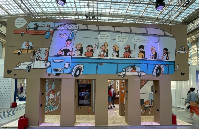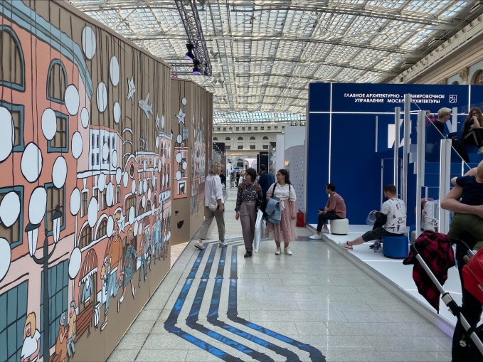 Главной темой выставки этого года стали «ПЕРСПЕКТИВЫ». «Открывал» Форум необычайно яркий стенд Москомархитектуры, буквально напоминающий город. Стенд, собственно, и являл собой город из картона, большой, разноцветный с собственной площадью и амфитеатром. Это «детское» по стилистике пространство демонстрировало социальную инфраструктуру Москвы: школы, спортивные центры, библиотеки и поликлиники… Особенностью экспозиции стали рисунки художника Алисы Юфы, покрывающие стены лабиринта.