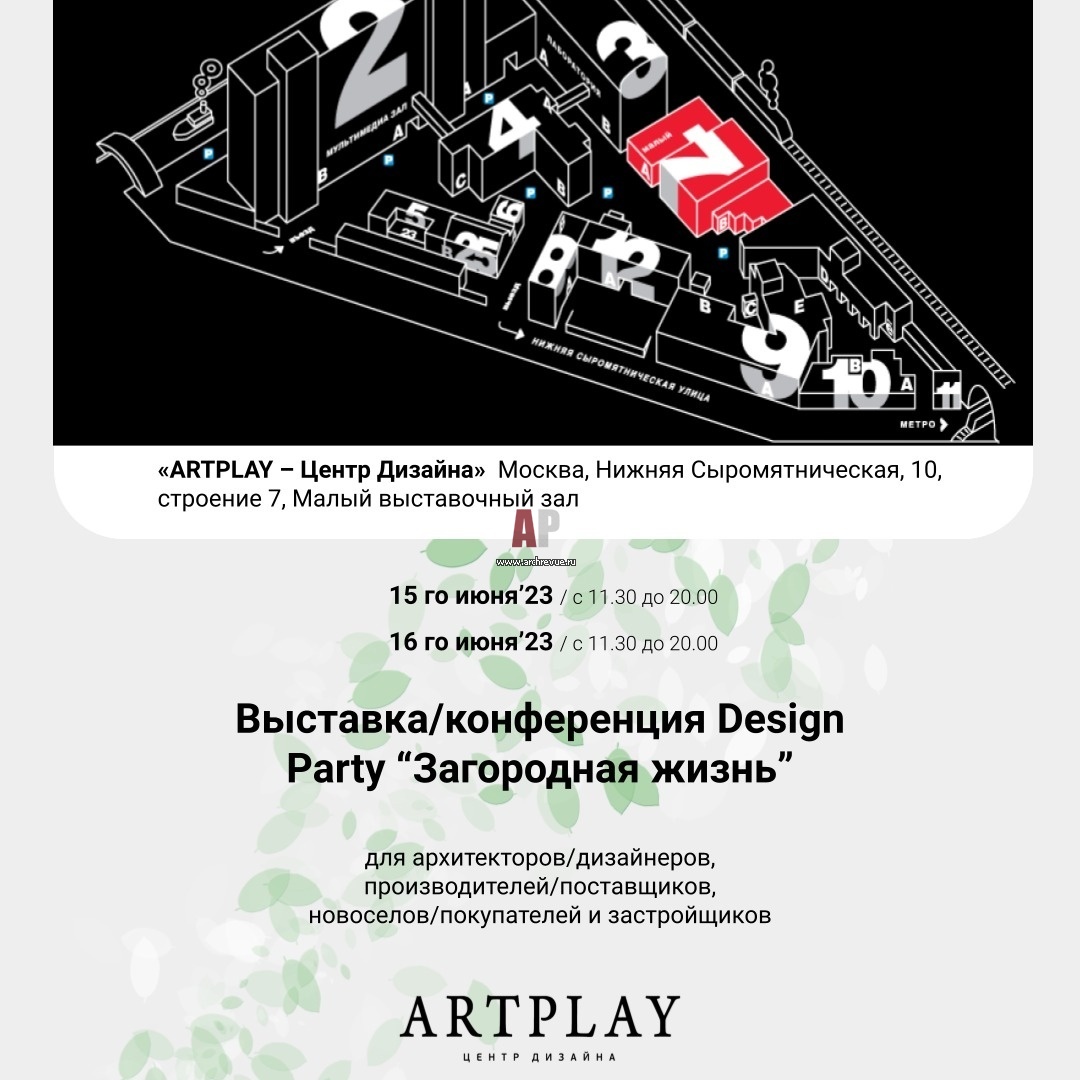 Выставка-конференция Design Party «Загородная жизнь» состоится в Центре дизайна ARTPLAY 15-16 июня 2023 года.