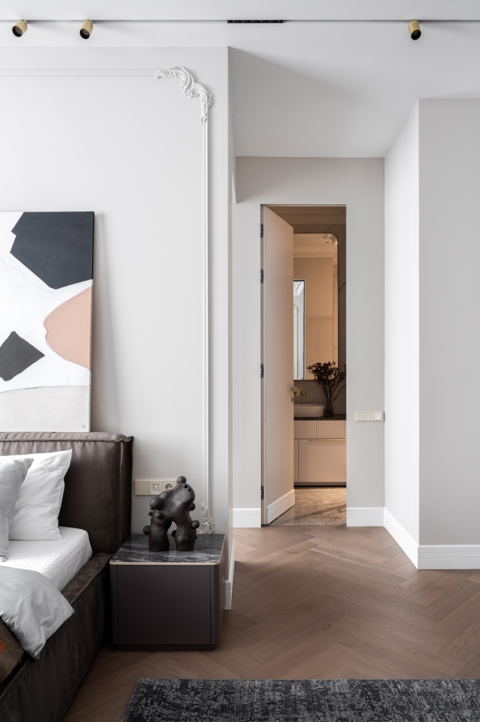 Екатерина Дурава: Тяготею к натуральным материалам и не люблю пластмассу: акриловый камень, полиуретановую лепнину, ламинаты… Выбираю натуральность плюс технологичность: инженерную доску, гипсовые панели и барельефы и травертин вместо плитки. Даже штукатурки и краски на стенах делаем под натуральные покрытия