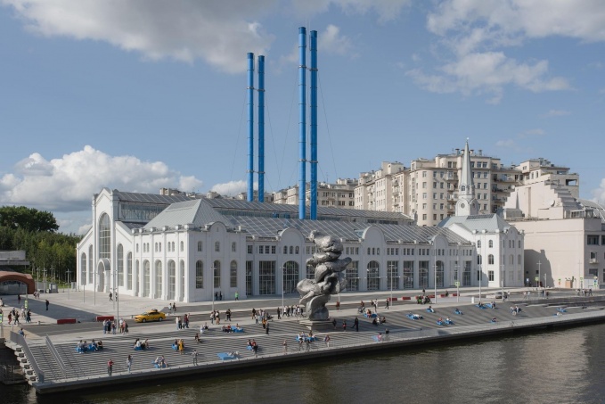 Переход через Патриарший мост мимо Храма Христа Спасителя, где справа открывается вид на ЦДХ и Новую Третьяковку с Музеоном, и группа уже на следующей точке маршрута - возле «синих труб» ГЭС2. Подробности создания проекта ГЭС 2. О реконструкции одной из старейших электростанций Москвы, постройки 1904 года и превращения объекта в культурный центр по проекту итальянского архитектора Ренцо Пьяно раскрыла приглашенный экскурсовод, архитектор АБ АПЕКС (ген. проектировщика музея современного искусства по проекту Ренцо Пьяно). Три основных шага архитектора: восстановление уникального исторического облика здания, включая стеклянный купол-крышу; создание Березовой рощи как символа России; и безбарьерный выход к реке – стали фундаментом создания этого уникального проекта. О «синих трубах», в прямом смысле «легких ГЭС 2» (через эти трубы в здание электростанции поступал свежий воздух) лучше всего сказал сам Ренцо Пьяно: «Мне нравится идея, что эти четыре трубы издалека будут всем говорить, что здесь под ними что-то интересное и важное: центр, фабрика, Дом культуры» (из интервью для Коммерсантъ).