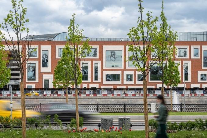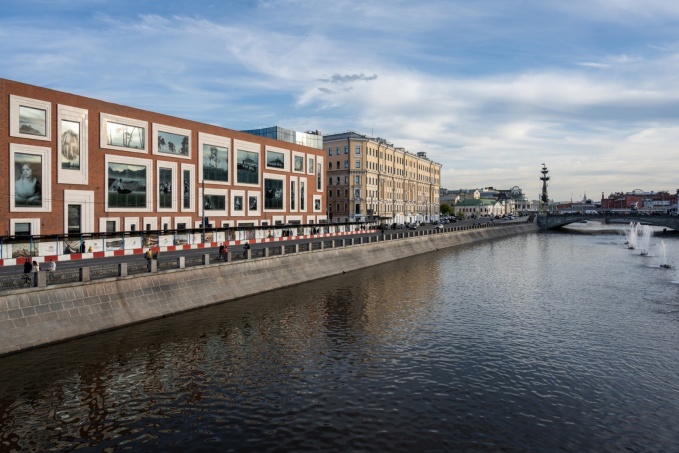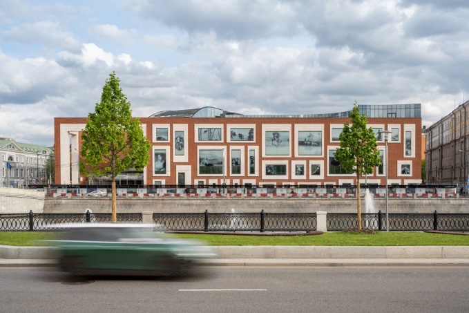 Еще один короткий переход… и по Кадашевской набережной - к Третьяковской галерее. Новое здание, главный фасад которого обращенный к Кадашевской набережной, максимально раскрыт на город, представляет собой воплощенную в материале метафору музейной функции комплекса - проект АБ СПИЧ, авторы проекта Сергей Чобан, Игорь Членов. «Лицом» фасада стали окна-«картины», обрамленные широкими рамами. Сама идея разных по ширине, массивных по отношению к «полотнам» рам воссоздает образ и структуру коллекции – и конкретного собрания Павла Третьякова со шпалерной развеской – когда произведения искусства, разделяемые лишь рамами, закрывают практически всю плоскость стены. Фасад здания выложен из фактурного красного кирпича, обрамления окон выполнены из белого камня (мраморизированного известняка) - сочетание традиционное для исторического центра Москвы и для зданий Третьяковской галереи, в частности. Материал и цветовая гамма фасада нового корпуса подчеркивают преемственность архитектурного языка корпусов музея, построенных в различные исторические периоды. За красным фасадом скрывается современный дугообразный стеклянный корпус, который по-особому бережно огибает и прикрывает собой от шумного современного города еще одно сокровище Москвы – старую Третьяковскую Галерею.