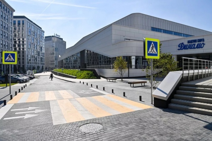 Новое здание Академии спорта «Динамо» интегрировано в существующие пешеходные маршруты района. На эксплуатируемой кровле расположена смотровая площадка с лестничным спуском в Петровский парк.