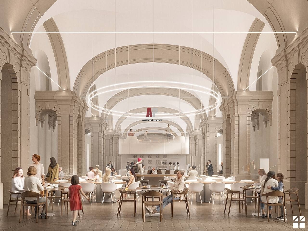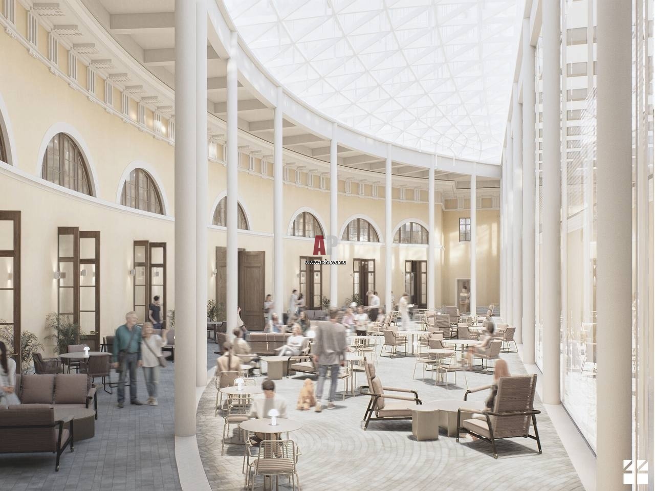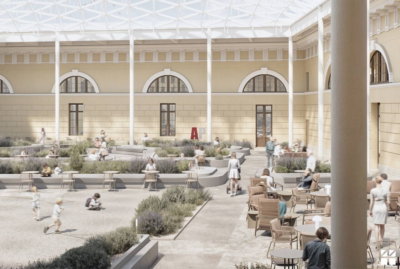 Проект предусматривает приспособление объекта под многофункциональный центр, включающий выставочные пространства, литературный клуб, концертные площадки, площадки для детского и семейного досуга, а также для общегородских общественных мероприятий, точки общественного питания, административные и технические помещения.