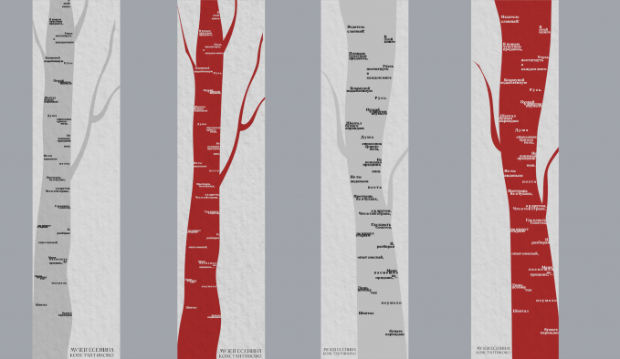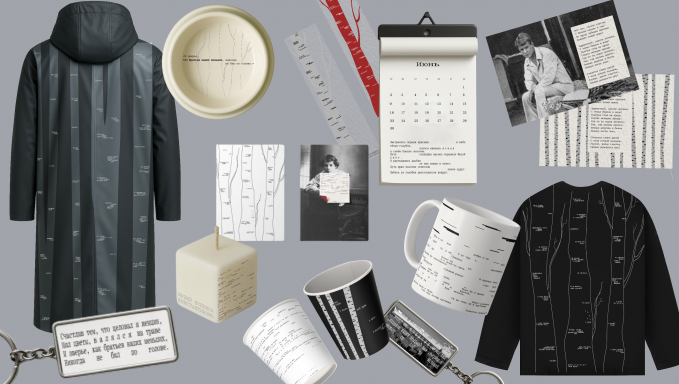 Для Государственного музея-заповедника С.А. Есенина команда-победитель «Нога Гришаева» переосмыслила жизнь и творчество поэта через русскую природу. В основе сувенирной линейки – визуальный образ берёзы в виде строк из стихотворений С.А. Есенина. Коллекция включает в себя свечи, закладки для книг, блокноты, открытки, карандаши, стаканчики, свитшоты, дождевики.