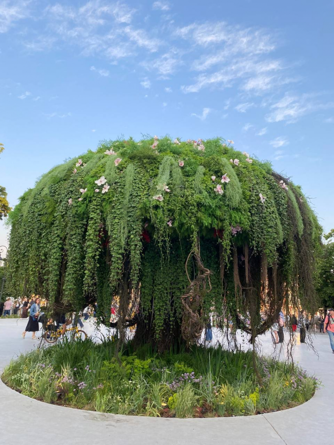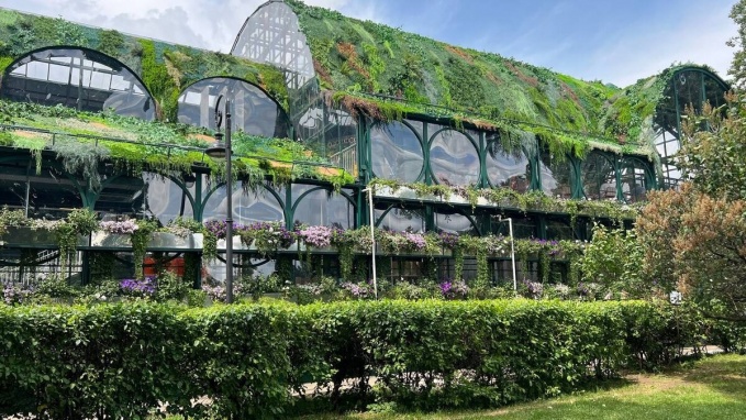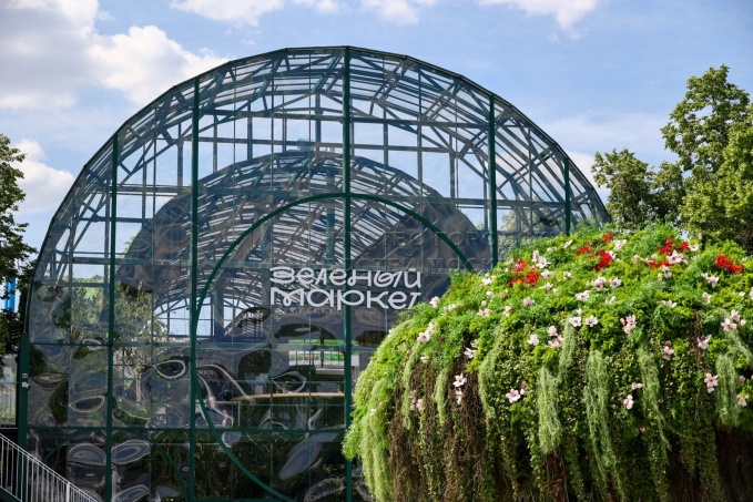 Популярный элемент ландшафтного дизайна – оранжерея - одно из чудес Болотной. Здесь все по-летнему преобразилось: «вчерашний» зимний каток превратился в роллердром под открытым небом, площадь с новогодним паровозиком – в баскетбольную площадку, лыжный маршрут – в фотозону с фотобудкой и в зоны отдыха с пуфами и шезлонгами…