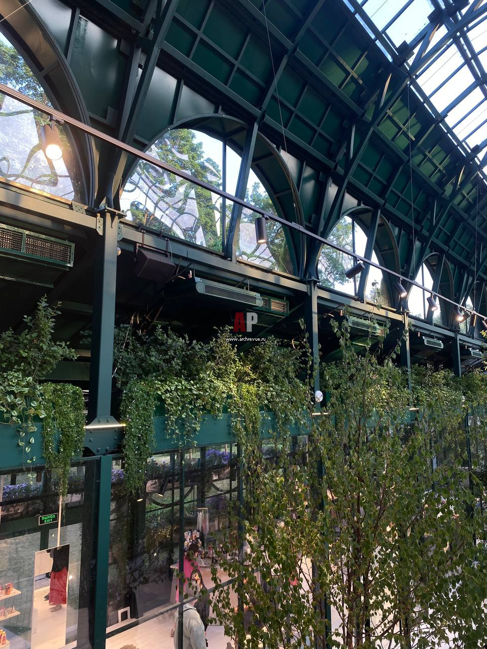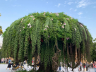 Настоящие городские джунгли, ниспадающие каскадные растения, водопад. Летний ландшафт - в сердце Москвы на Болотной