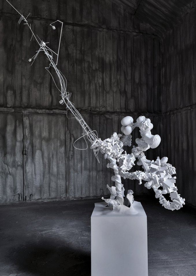 Инсталляции, скульптуры, объекты, видеопроекция и звуковая инсталляция — во всем широком спектре медиумов выставка представляет попытку уловить момент, когда хаос самоорганизуется в новую структуру.