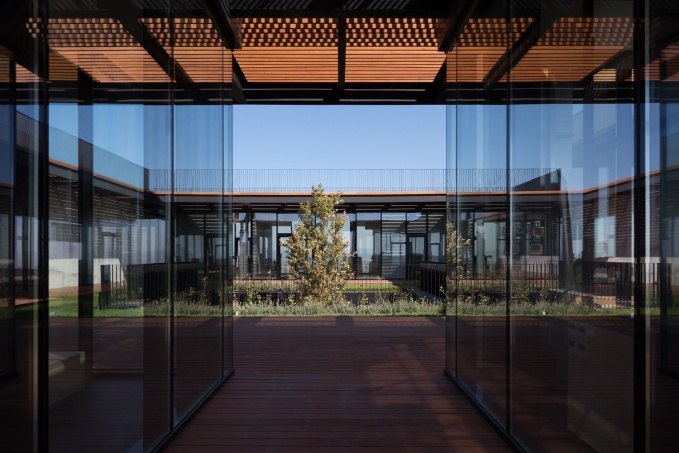 Форма спроектированного здания вытянута и вторит горизонту. Она позволяет фиксировать самые эффектные точки рельефа. Сплошь застекленное здание растворено в ландшафте, смотровая площадка на крыше распахивает вид на море, открытые лестницы, ведущие в небольшой сад во внутреннем дворе, дарят новые точки обзора.