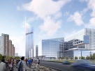 Национальный космический центр, строящийся по проекту АБ UNK project, общей площадью более 250 тысяч кв. м состоит из 47-этажной треугольной башни со шпилем - архитектурного элемента, вдохновлённого стыковочным узлом ракет-носителей, восьми корпусов, конгресс-центра и подземной парковки.