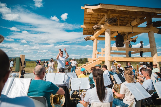 Главным событием стал «Колокол» – «Хан дарханай хонхо». Его презентация превратилась в мистическое действо. Под специально написанную композицию бурятского мастера Баира Дондокова «Колокол Тужи» в исполнении оркестра имени Олега Лундстрема, мощные звуки разлились по степи. Поэма в трех частях – мольба «Небеса, услышьте нас», ярость «Стихия» и умиротворение «Гармония» – стала звуковым отражением пережитого парком и краем. Сам колокол, освященный по древним обрядам, предназначен для мужчин, чтобы «отправлять сигналы в небеса», думая о сокровенном.