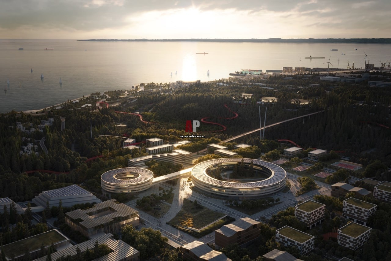 Проект -победитель международного конкурса «Экополис» в Корсакове — это новые жилые кварталы, социальная инфраструктура, научный центр с кампусом, «зеленый» транспорт, энергия из возобновляемых источников, обновленная зона набережной и порта.