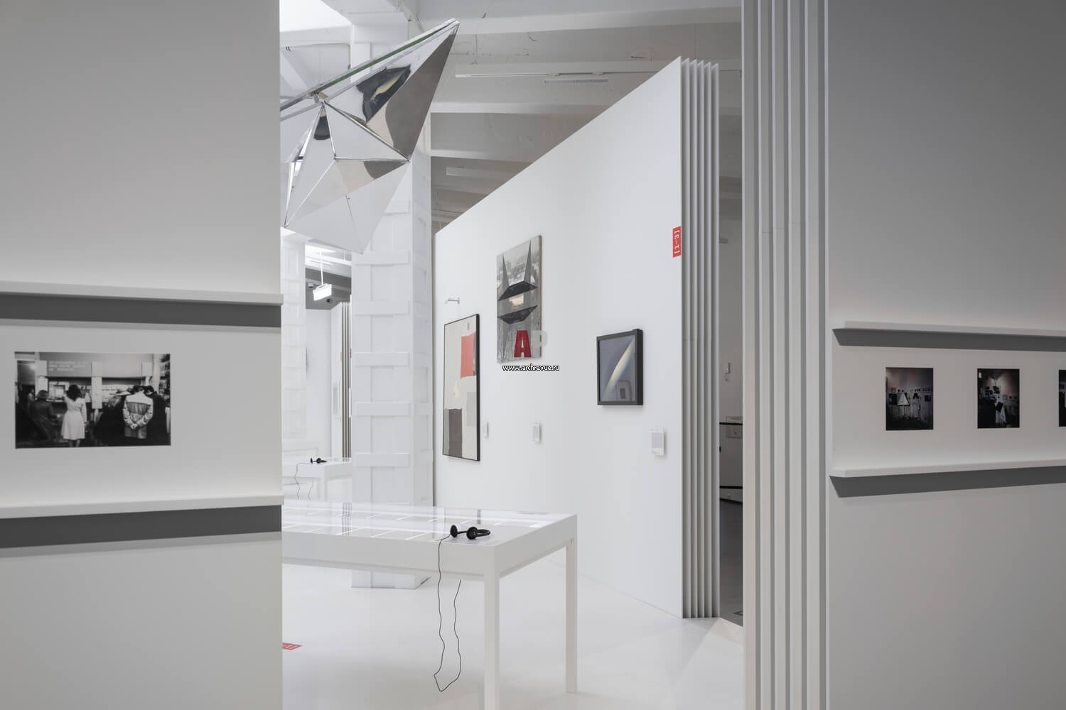 Архитекторы Александр Бродский и Наташа Кузьмина вписали в круглый план выставочного зала белоснежный «журнальный» куб. Внутри центрального объема зрителей ждет экскурс по разделу «Наследие». Разделы выставки «Комплекс Малевича», «Филоновская мифологема», «Случайная встреча», «Опять ангела нарисовал…», «Пора искусству вторгнуться в жизнь», «Окно расширенного смотрения», «Сам себя издат» и «Право слова» проводят посетителей по темам, волновавшим художников как в 1910–1920-х, так и в 1970–1980-х годах.