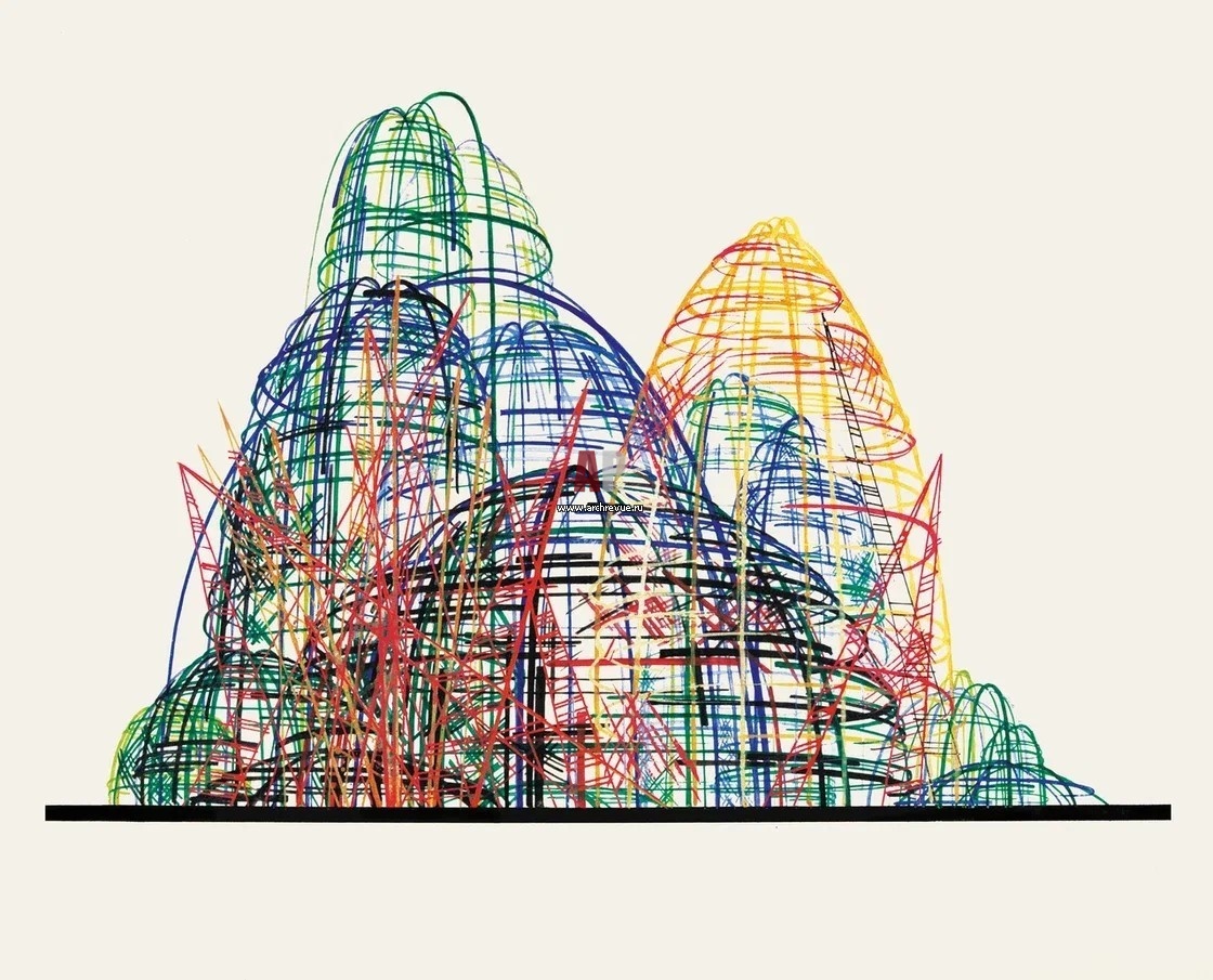 Фантастическая композиция организации пространства сложных по форме и сочетанию элементов сооружения № 28 из цикла Архитектурные фантазии , 1929 - 1932, Архитектурный благотворительный фонд