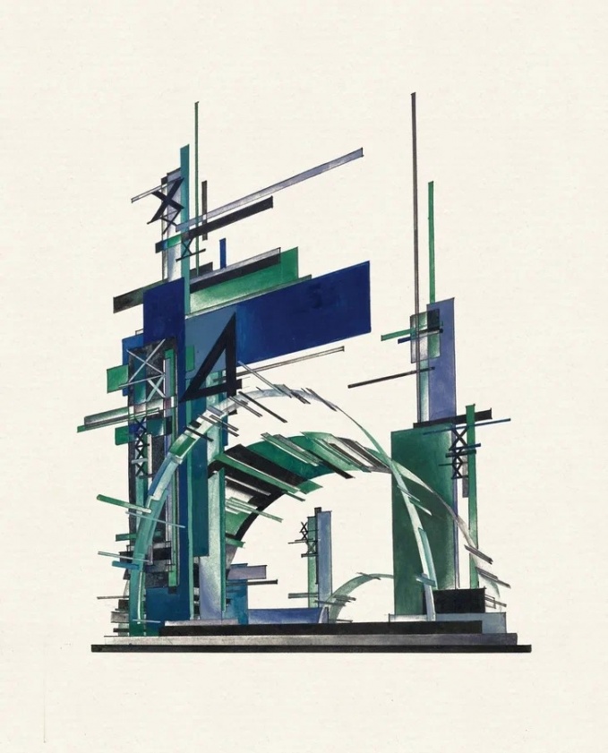 Надуманная сложная пространственная композиция №89 из цикла Архитектурные фантазии, 1929 - 1932, Архитектурный благотворительный фонд имени Якова Чернихова