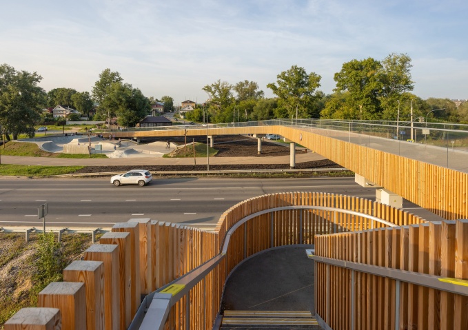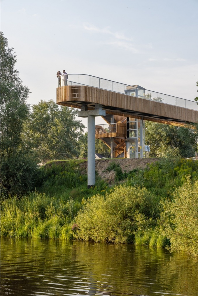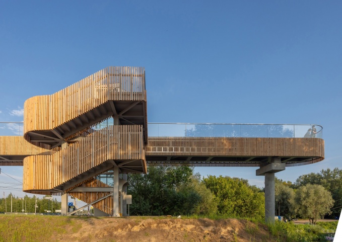 Выбор народа: Пешеходный переход со смотровой площадкой на территории Волгоречья. Бор, Нижегородская область. Авторы: Станислав Горшунов, Мария Юдина, Елизавета Будько. Архитектурное бюро ГОРА