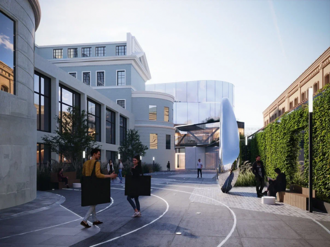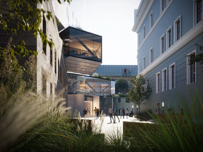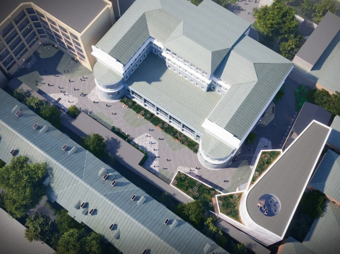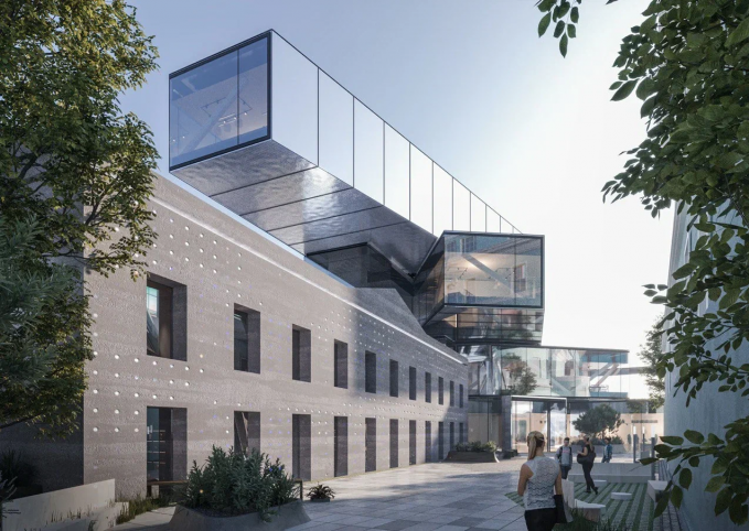 Пятиэтажный объем с подземным уровнем включит все необходимые помещения – от просторной входной зоны и учебных пространств самого широкого назначения, в том числе классов скульптуры, рисунка, живописи и лекционных залов до хранилища.