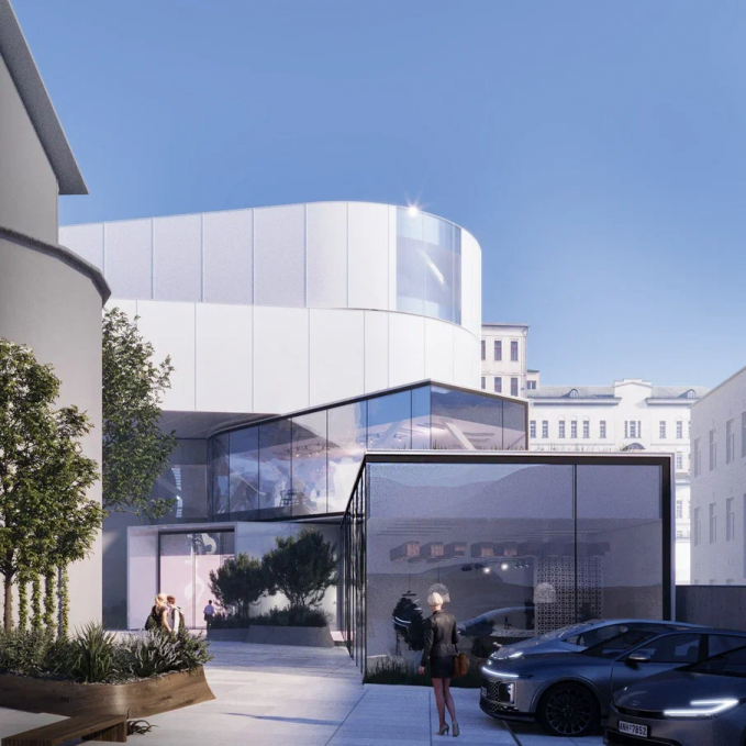 Новый комплекс – это соединенные на подземном и первом уровне два здания. Уже существующее возведено на месте каретного сарая последней четверти 18 века. Здание было задумано и спроектировано как историческая реплика. Проект 2008 года не был реализован полностью и будет реконструирован. В новой концепции архитекторы предлагают максимально деликатное прочтение: изящную строгую и минималистичную стилизацию с бетонными навесными панелями по фасаду.