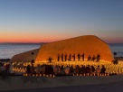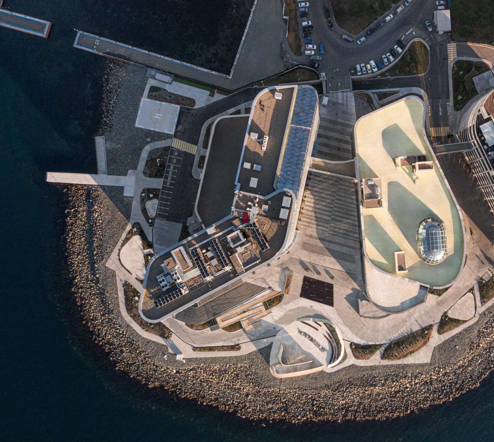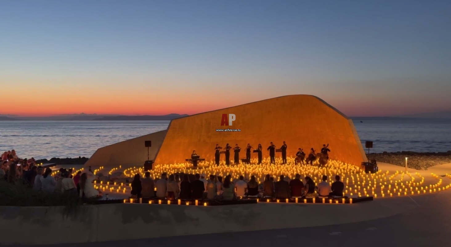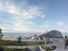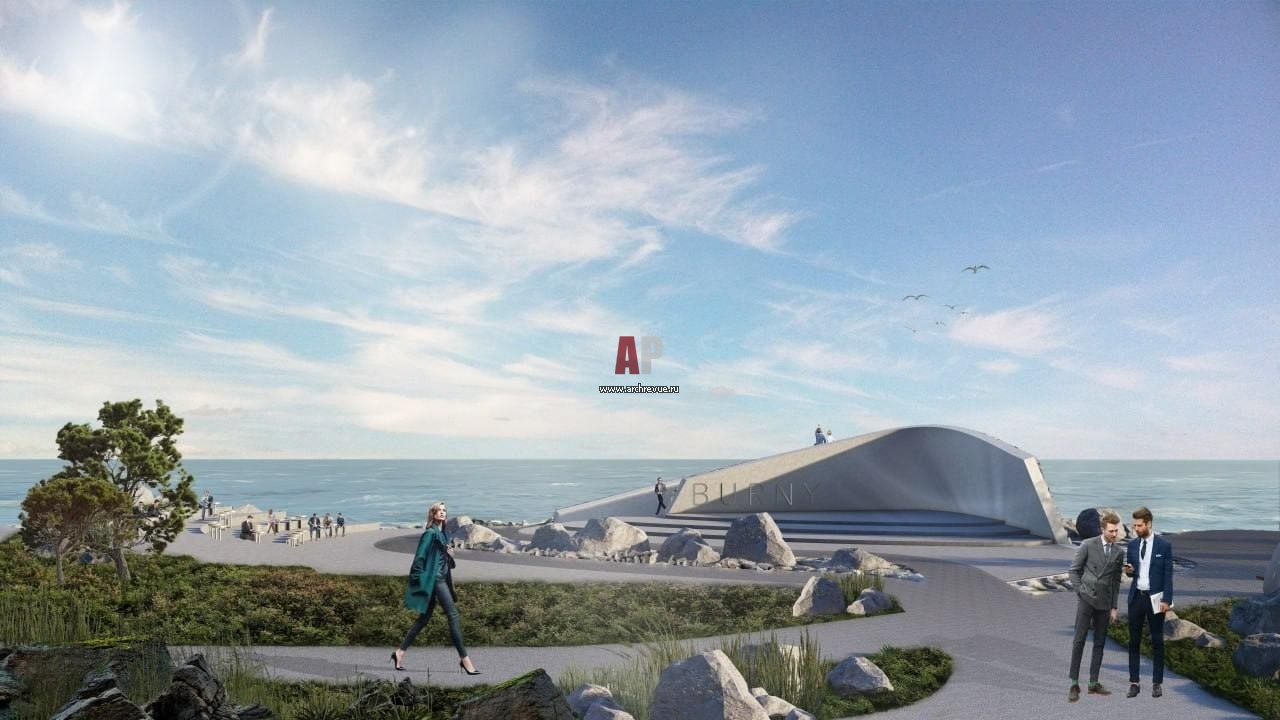 Доминанта проекта - амфитеатр на набережной, который превращается в настоящую сцену искусства с видом на море. Форма сцены работает как ветрозащитный элемент, для защиты от ветра предусмотрены приподнятые дорожки с ограждением, навесы со стенками и специальная геопластика.