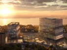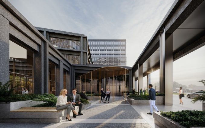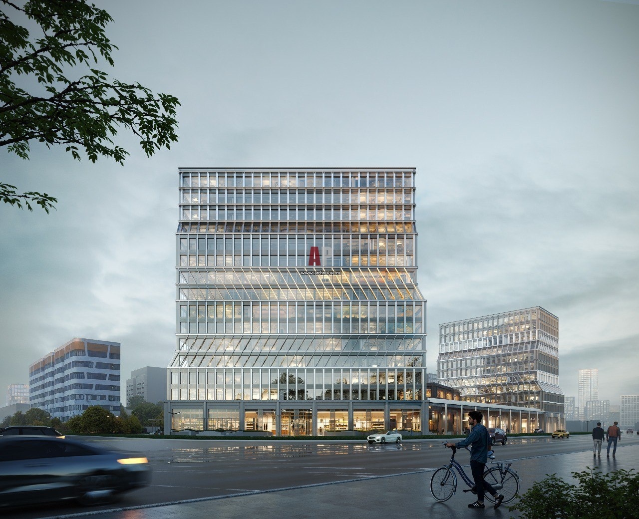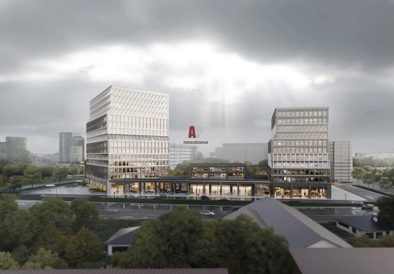 Благодаря асимметричной форме зданий и динамическому рисунку алюминиевых ламелей фасада цоколя свет по-разному заиграет в течение дня. Здание будто постоянно находится в движении, изменяется, что отсылает к идее новаторства и изобретательства. Материалы для фасада выбраны с учетом их долговечности и низкого углеродного следа. Особая функциональность центра потребовала нестандартных решений на этапе проектирования: специфических условий кондиционирования и водоотведения, просторных помещений и высоких потолков.