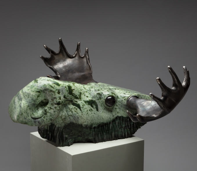 Лось, нефритоид, обсидиан, металл, длина 715 мм