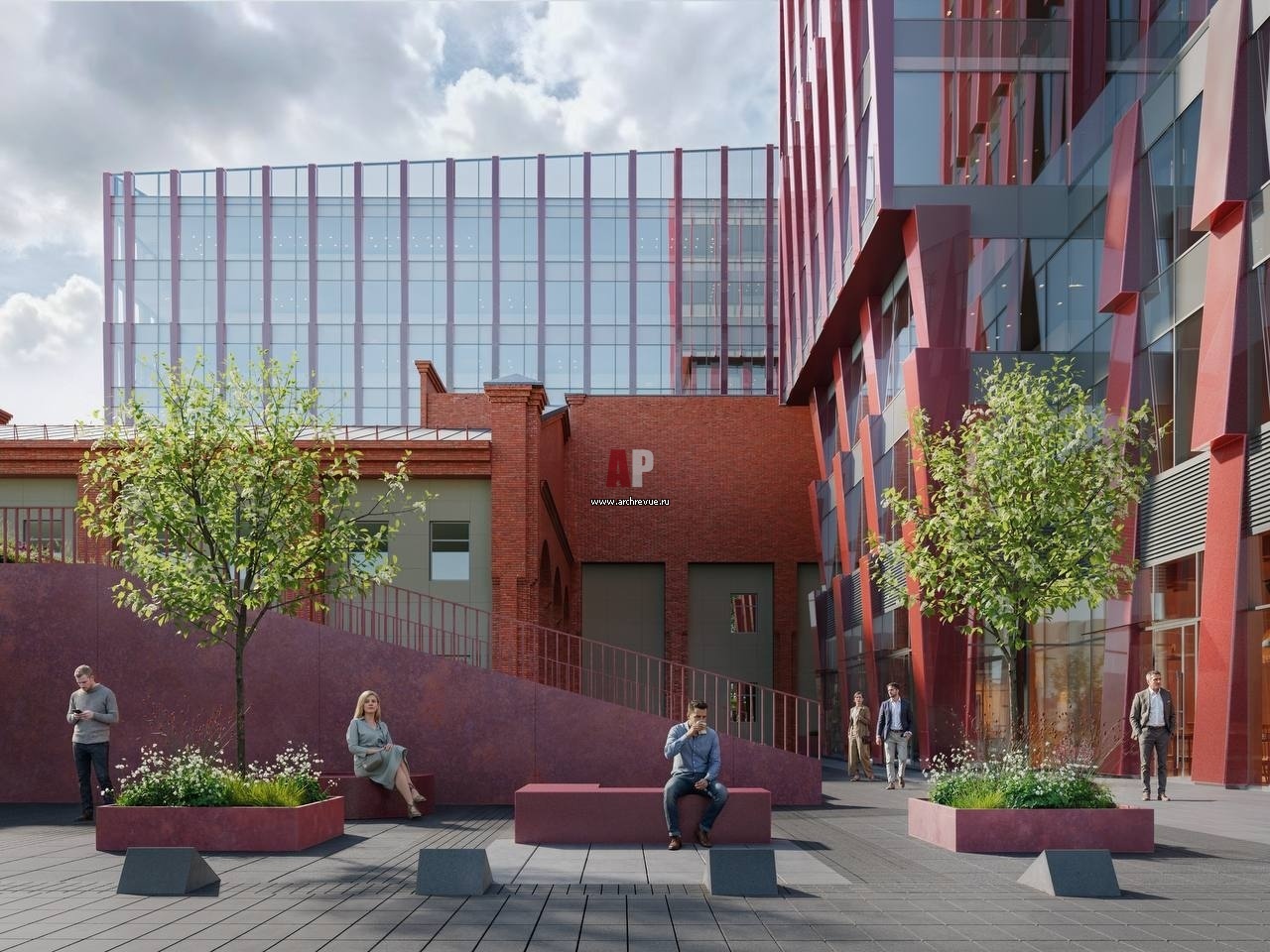 «Нам хотелось сохранить индустриальный дух места, его историю — раньше здесь был пивоваренный завод. Поэтому в основу благоустройства лег принцип контраста: строгая геометрия, фактура кирпича и бетона смягчаются, становятся уютными за счет живой зелени. Объединяет пространство акцентный красный цвет, он собирает все элементы в единый запоминающийся образ. В итоге прилегающая территория бизнес-центра превращается в полноценную среду, которая работает на имидж проекта и будущих резидентов», - комментируют подходы к работе авторы проекта.