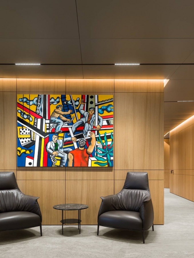 Реализованный интерьер заказчик дополнил личной коллекцией современного искусства, сделавшей пространство уникальным.