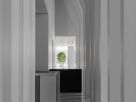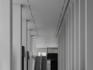 Пространство с увеличенной высотой потолков подчеркивает визуальную связь с вертикальным ритмом архитектуры и формирует открытую, комфортную среду для сотрудников и гостей центра.