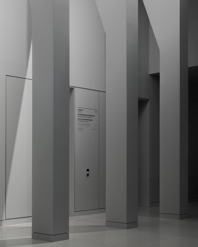 Концепция интерьеров общественного пространства офисного комплекса по проекту АБ «Цимайло Ляшенко и Партнеры» основана на геометрии фасадов