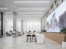 В интерьере офиса отразились ключевые ценности компании: новаторство, функциональность, внимание к деталям и забота о сотрудниках. Это прослеживается в таких решениях как продуманная эргономика, обширный фронт естественного освещения, комфортные санузлы, большое количество кофе-поинтов, помещения для индивидуальной работы разного размера, отделанные звукопоглощающим материалом, климат-контроль во всех помещениях. Внимание было уделено и акустическому комфорту: представительские зоны и весь пятнадцатый этаж имеют специальное акустическое напыление за подвесным потолком.