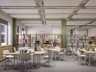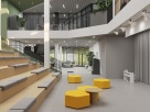 Комплекс обеспечит детей современными пространствами для развития и постоянного исследования: многофункциональным многосветным пространством с функцией актового зала на 200 мест, информационно-библиотечным центром с зонами для индивидуальных и групповых занятий, медиатекой и центром детских инициатив, IT-полигоном с возможностью зонирования и универсальным спортивным залом.