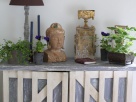 Шкафчик стоял когда-то в Пляжном домике на Ривьере в Ницце. ХIХ век. Понравилась фактура, очень удобно пользоваться, он пришелся по вкусу хозяевам и отлично «вписался» в интерьер. На нем интересная деталь – обломок из православной церкви. Когда-то он буквально лежал на земле, а я бродила на развалинах и подобрала…