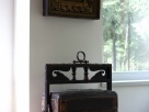 Это революционная лавка. Нашла ее лет 8 назад на Тишинке. Поразила как всегда фактура и эстетический «беспредел» со звездой в центре. У лавки оказался отменный размер – я как раз искала предмет, который в интерьере со временем можно без потерь, легко поменять на что-то другое. Но революционная лавка крепко «прижилась»…
