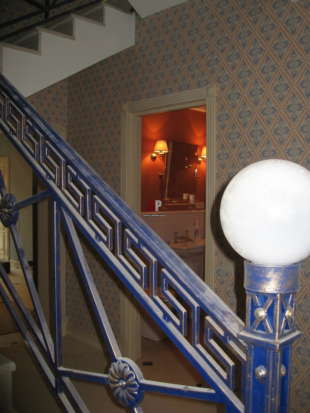 Автор проекта Екатерина Калинина. Лестница в загородном доме, бетонное основание, кованые ограждения.