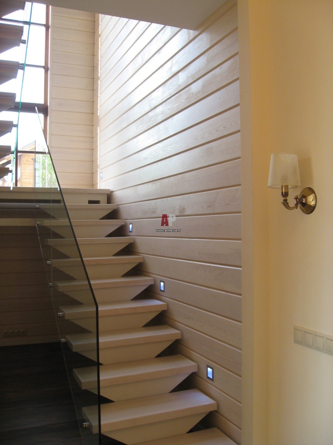 С деревом, которое заказчики выбирают за особое тепло, уют и возможность ходить по нему босиком, возникает много проблем. Ступени из шпона или массива достаточно капризны. Дерево может вести себя нестабильно, рассыхаться, под воздействием времени и влажности менять внешний вид. Трудно сохранить его в безупречном состоянии. В случаях, когда дерево устанавливается на ступени, мы предупреждаем заказчиков о необходимости спокойнее реагировать на такое поведение.