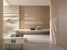 В этом сезоне узоры и орнаменты ванных комнат основаны на природных мотивах, особое значение придается натуральному дереву, которое мягко интегрировано не только в мебель для ванн, но и в другие предметы интерьера.