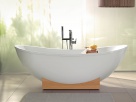 Для того, чтобы подчеркнуть сближение форм и природных мотивов, а также избежать дисгармонии элементов, предметы для ванной комнаты этого сезона, в основном, овальной или закругленной формы. Угловой может быть только мебель и то, при условии, что она изготовлена из дерева или других природных материалов.