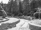 Растения рассаживаются по высотным отметкам соответственно дендроплану. И только после этого начинаются строительные ландшафтные работы - проложение и отделка дорожек, установка систем полива и электроснабжения. За этим этапом следуют работы по устройству газона и цветников. И лишь потом монтируется освещение и расставляется мебель.