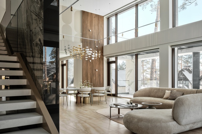 Для семьи с детьми дизайн-бюро Веры Галитаровой оформило трехэтажный дом под Новосибирском, создав светлый и воздушный интерьер с природными фактурами и атмосферой роскоши.