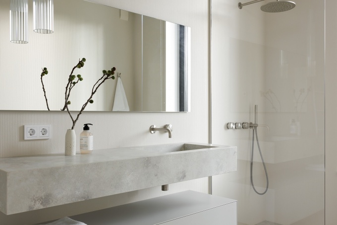 Заказчики хотели получить аскетичный и эргономичный интерьер в духе магазина Muji, они даже устроили тендер, который выиграло бюро RE, предложив проект в стилистике japanordic. Его идея – чистота, медитативная открытость, честные брутальные фактуры и простая геометрия. В квартире получилось минимум декоративных подробностей, а максимум воздуха, света и атмосферы. А ее художественный образ формирует эффектный этно-микс, с помощью современных технологий и материалов адаптированный к сегодняшнему дню.