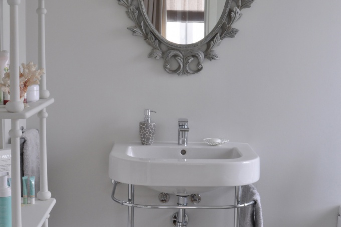 Квартира исполнена в уютном минимализме с элементами классического стиля. Идеей для создания интерьера послужило антикварное венецианское зеркало в ванной комнате. Его орнамент повторяется в плитке, фурнитуре мебели и форме хрустальных светильников Banci.