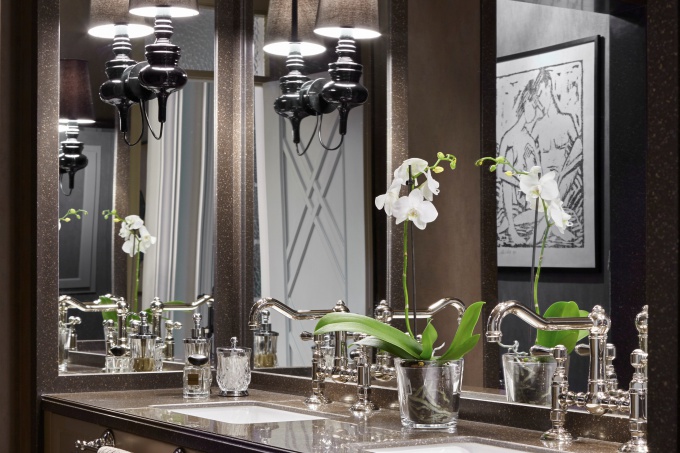 Основными декоративными акцентами стала авторская мебель и двери из ценных пород дерева и латуни.