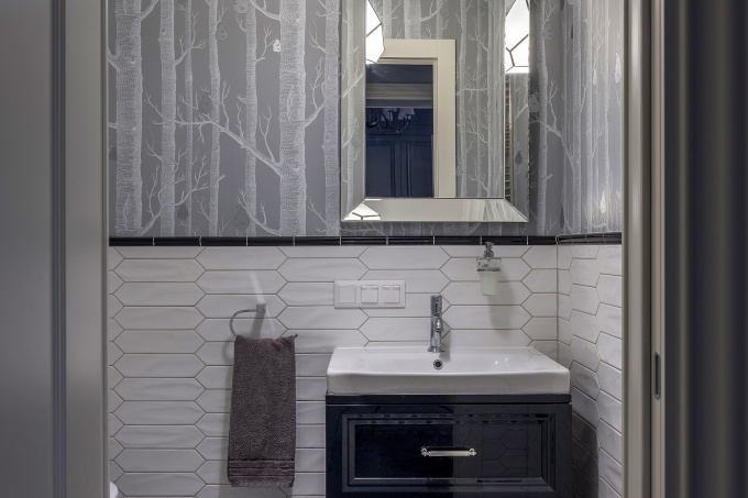 «Холодная серо-синяя гамма была обозначена заказчицей с самого начала, как и стилистика – консервативная, с элементами американской классики», - рассказывает автор проекта. В итоге получился интерьер в сдержанной, почти монохромной палитре, но благодаря гризайльному решению и множеству оттенков он выглядит сложным и насыщенным.